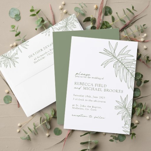 Sage Green Simple Botanical Leaves Wedding Designed by Amour Paperie