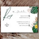 Make your wedding planning smoother and more stylish with this elegant RSVP card featuring lush tropical foliage and clean modern typography. Designed in a minimalist white background with sage green botanical accents, it adds a touch of natural beauty to your wedding stationery suite.