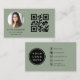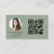 Sage Green Modern Minimalist Photo with QR Code Business Card