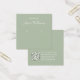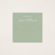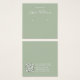 A simple sage earring display card: just white text on sage green background (a modern shade of green), with the earring places indicated by two very small circles. The name is written in an elegant script.