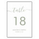 Minimalist, yet elegant sage green wedding table number card featuring a modern script font. Matching items available.