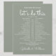 This stylish wedding schedule-timeline can be personalised with your wedding details set chic white lettering on a sage green background. Designed by Thisisnotme©