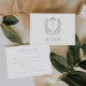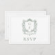 Sage Green Monogram Crest French Roses Wedding RSVP Card