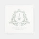 Sage Green Monogram Floral Crest Elegant Wedding Napkin