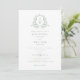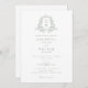 This Sage Green Monogram Floral Crest Wedding Invitation features an elegant vintage formal botanical monogram crest with delicate vines and floral accents. This timeless invitation has a baroque chinoiserie style for your Victorian inspired luxury wedding.