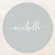 Sage Green Monogram Name Script Signature Round Paper Coaster