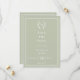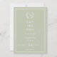A sage green colored background, white frame. Personalize and add your monogram initials, names and the details.