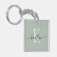 This modern sage green keychain with your first name in a trendy script font in black and your first initial in a modern cap font in white is perfect for your keys.