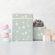 Elegant and minimalist wrapping paper in a neutral design, with ivory abstract hand-drawing circles and squares on sage green background.