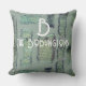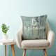 Moden trendy monogram family name square throw pillow,customisable,personalizable. If you don’t need the typography, it can be simply deleted.Monochrome monochromatic aspect, with subtle nuances of sage green,olive green,teal blue,grey.Muted powdered tones,grunge distressed look for the script and for the decorative design.Textile texture in abstract geometric composition. Easy to match in any ambient,especially for modern farmhouse,lake house or even beach house decoration style.Casual relaxed design look,sort of patchwork interpretation,for a comfortable cosy atmosphere at your home or as a beautiful creative original thoughtful gift idea.