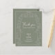 Pair with matching wedding invitation, save the date, RSVP card, details card, and welcome sign to complete the sage green ornate arch wedding suite.