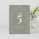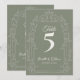 Elegant Sage Green Ornate Arch Botanical Wedding Table Number Card.