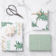 Sage Green Pagoda Christmas Tree Pattern Wrapping Paper Flat Sheet Set of 3