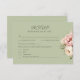 Stylish wedding RSVP card with watercolor blush and ivory peonies on a soft sage green background. A timeless botanical design for elegant, romantic, or garden weddings. Personalize the text for your special day.