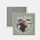 Sage green photo modern script save the date magnet featuring a heart-shaped photo window, muted sage green background, and hand-lettered script text in white. This design highlights your engagement photo while clearly sharing the wedding date and location in a calm, organic color palette that feels both modern and timeless. Ideal for weddings, outdoor celebrations, destination events, or vow renewals with a natural, refined aesthetic. Easily personalize with your details.