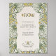 Welcome your guests with a touch of timeless elegance as they step into your celebration with our William Morris Pimpernel Wedding Welcome Sign. The design features the famous Pimpernel pattern by William Morris, a pioneer of the Arts and Crafts Movement. His organic, intricate designs bring a rich narrative and a touch of historical sophistication to modern wedding aesthetics. The vintage colours of this pattern, accented by delicate foil gold details, seamlessly blend tradition with contemporary style, making it a magnificent choice for your big day.