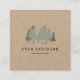 Unique square business cards featuring a pine tree woods silhouette in sage green for adventure guides, tour guides or any outdoor type occupation. Customise this nature theme business card and give it your individual style. You may like to select the kraft paper type to add a rustic country flair.