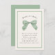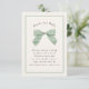 Hand painted bow with subtle plaid in light green and ivory; editable text, border and background colour on front and back. Add a QR code if desired to the backside for registry, website etc