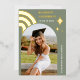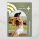 Celebrate your graduation in style with this unique sage green graduation announcement! This eye-catching design features a modern arch with delicate stars and a whimsical rainbow, all printed in real gold foil for a touch of luxury. The sage green background adds a touch of sophistication. Personalise it with your name, school, class year, and a special message to create a truly unique keepsake. Perfect for sharing your achievement with friends and family. Printed on high-quality card stock with a variety of paper types and finishes to choose from.