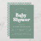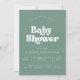 A trendy baby shower invitation with the headline "baby shower" in white retro font on a muted teal background. Personalise with your details in white sans serif font. The reverse features a polka dot pattern in teal and white.