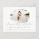 Sage Green & White Romantic Brushed Frame with Photo Chic Save the Date Postcard. With luxury marble texture back, elegant calligraphy Script font plus slim line serif! Edit yours today with your names, date and photo!
