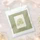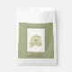 This sage green wedding favour bag captures the romantic atmosphere of a cosy garden café, framed by soft botanical details and vintage charm. The gentle sage tones bring a sense of calm, elegance, and timeless beauty, making it ideal for couples who dream of a wedding inspired by nature, outdoor venues, or rustic courtyard settings. The delicate bicycle with flowers, leafy border, and charming café backdrop create a warm and welcoming scene that feels both intimate and refined.