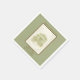 This sage green wedding napkin captures the romantic atmosphere of a cosy garden café, framed by soft botanical details and vintage charm. The gentle sage tones bring a sense of calm, elegance, and timeless beauty, making it ideal for couples who dream of a wedding inspired by nature, outdoor venues, or rustic courtyard settings. The delicate bicycle with flowers, leafy border, and charming café backdrop create a warm and welcoming scene that feels both intimate and refined.