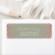 The edges of this elegant modern wedding return address label feature a rose gold faux glitter design. The customisable text combines cream handwriting and copperplate fonts on a sage green background.