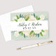 A soft sage green background sets this white rose and greenery wedding thank you card apart with a fresh, romantic elegance. The couple's monogram names and wedding date are featured in flowing script on a crisp white center band, creating a striking contrast against the botanical blooms. Personalize names, date, and your inside message for a beautifully coordinated suite piece.