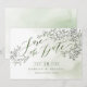 Elegant modern calligraphy save the date card with rustic floral design on green watercolor background, great for modern rustic wedding, spring wedding or summer wedding.