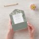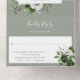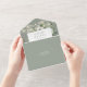 This all-in-one wedding invitation features elegant green and white flowers, string lights, and modern typography. The invitation includes a perforated RSVP card that can be individually addressed or left blank so you can handwrite your guest's address details. Designed by Thisisnotme©