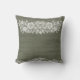 Sage Green Rustic Wood & White Lace Lacy Farmhouse Cushion