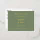 Sage Green Save the Date Foil Invitation Postcard, please personalise the front and back of the postcard using the online personalisation template before ordering. The front of the postcard features real metallic foil text on a sage green background, while the back of the postcard features black ink on a white background. Should you wish to change the layout, or to customise the design for an event type other than a wedding, please scroll down in the personalisation template and click on the "Edit using Design Tool" option to "Customise further".