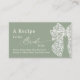 Sage Green Script Bow Share A Recipe Bridal Shower Enclosure Card
