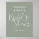 This sage green elegant script bridal shower welcome sign can be personalised with your name and special date. Designed by Thisisnotme©