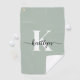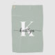 This simple, modern golf towel with your first name in a trendy script font in black and your first initial in a modern cap font in white on sage green is perfect for you. It's stylish and trendy and yet very classic. It's unique - like you! Get a couple so you always have a clean one on hand.