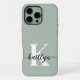 This simple, elegant sage green iPhone 16 Pro Max Case with your first name in a trendy script font in black and your first initial in a modern cap font in white would look fabulous on your cell phone and will keep it protected from breakage. It's stylish and trendy and yet very classic.