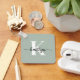 This modern sage green keychain with your first name in a trendy script font in black and your first initial in a modern cap font in white is perfect for your keys. It's stylish and trendy and yet very classic.