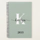 This simple, elegant sage green 5.5 x 8.5 soft planner with your first name in a trendy script font in black and your first initial in a modern cap font in white is perfect for you. It's stylish and trendy and yet very classic. It will make keeping appointments, meetings, deadlines, homework easy to keep track of and simplify your life.