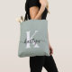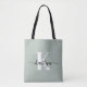 This simple, elegant sage green tote bag with your first name in a trendy script font in black and your first initial in a modern cap font in white is perfect for carrying office work, school work, books, craft projects, anything at all. It's stylish and trendy and yet very classic.