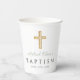 Sage Green Script Religious Cross Boy Baptism Paper Cups