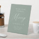Share your favourite memory of the bride sign, features minimalist stylish modern script and text in sage green and white, simple and clean, great for bridal shower, wedding, birthday, graduation party, retirement party, funeral, etc.