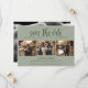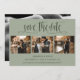 Elegant sage green wedding 4 photo save the date cards with modern calligraphy. Easily personalise this sage wedding save the date with your images and wedding details including a wedding website when applicable.