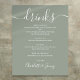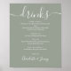 This elegant script minimalist sage green drinks menu sign is perfect for your wedding celebration. Designed by Thisisnotme©