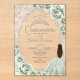 Sage Green Silver Floral Quinceanera Acrylic Invitations