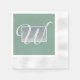 Sage Green Silver Monogram Paper Napkins