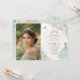 The perfect invitation for your daughter's quinceañera is finally here! This chic and lovely quinceañera invitation features soft sage green roses, an elegant princess ball gown, a sparkly silver tiara and tropical boho elements. Click the "customise further" button if you wish to re-arrange and format the style and placement of the text.