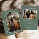 Get your wedding guests excited for your special day with this modern sage green two photo save the date card. Featuring an arch-like design with boho vibes, this card is perfect for displaying two stunning photos of you and your partner and is guaranteed to get your guests excited for the big day. So, make a statement with this unique save the date card and let the wedding planning begin!