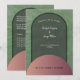 Celebrate your wedding in style with this simple arch and round shapes in nature earthy tones like sage green and a glossy rose gold with a greenery background. The wedding invitation is simple, elegant and has a modern boho chic style. Personalise it with your details, your monogram and program for a truly remarkable celebration.