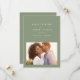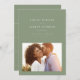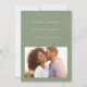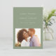 With tastefully modern but simple typography, this one-photo save the date is the perfect way to announce your engagement and upcoming wedding. The popular sage green colour works with every style of wedding from formal to casual. The back features a simple stripe. The colour can be changed by clicking "customise further."